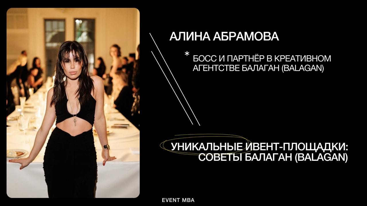 — Меня зовут Алина Абрамова, я босс и партнёр в креативном агентстве БАЛАГАН (BALAGAN). Давайте разберемся, из чего складывается стильный ивент, какую роль в нем играет площадка и почему именно она часто становится одним из главных факторов успеха.